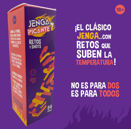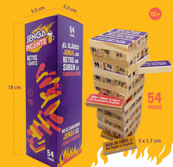 Lleva la diversión a otro nivel con el Juego Jenga Picante, una versión atrevida del clásico juego de destreza, diseñada especialmente para adultos que quieren romper la rutina y encender la chispa 🔥.